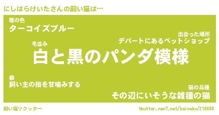 | パンダ模様のシャム猫、、(略 …「めい」 | 6月18日 03:09 |