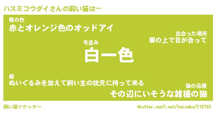 | 欧米人風あだ名 | 『マイケルハスミコウダイ』 |