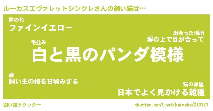 | ツイッター | ルーカスエヴァレットシンクレさんのツイッターID『namakemono_man』 |
