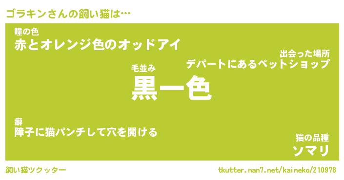 | 男性向けラノベタイトル風あだ名 | 『ゴラキンの憂鬱』 |