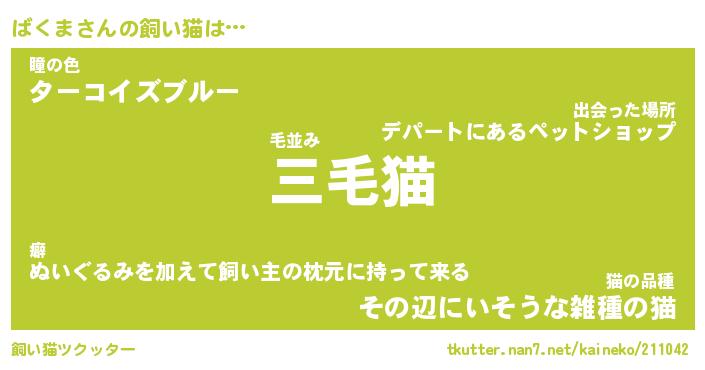 | パンダ模様のシャム猫、、(略 …「めい」 | 6月18日 03:09 |