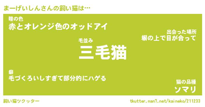 | パンダ模様のシャム猫、、(略 …「めい」 | 6月18日 03:09 |