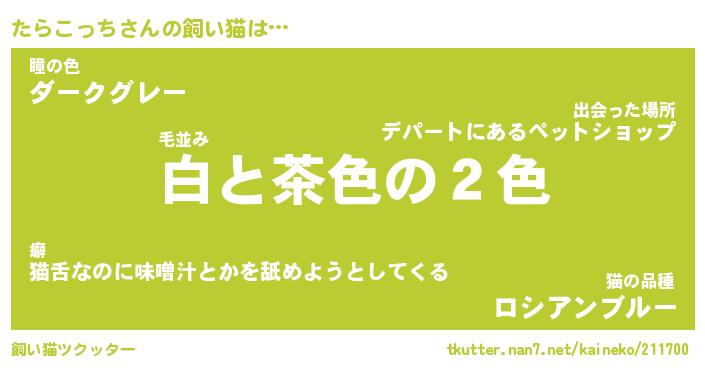 | 猫 | 猫の名前『たらこっちーにゃん』 |