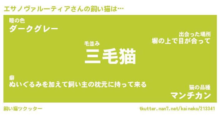 | 猫 | 猫の名前『エサエサにゃん』性別『メス』 |