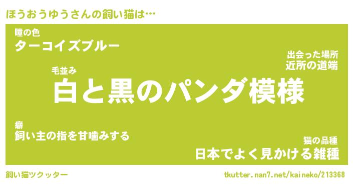 | パンダ模様のシャム猫、、(略 …「めい」 | 6月18日 03:09 |