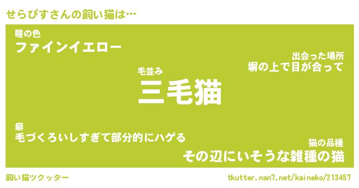 | 意味不明あだ名 | 『ペロリンせらぴす』『永久保存せらぴす』 |