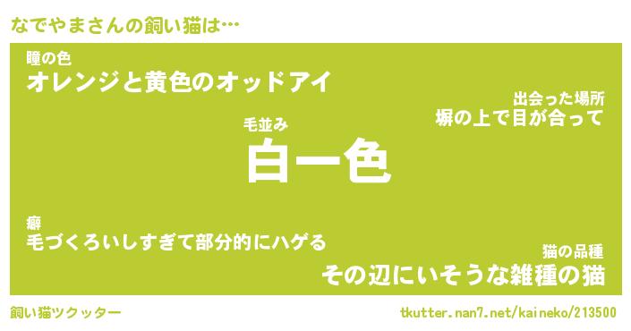 | 2回繰り返すあだ名 | 『なでなで』『ななでで』『いらいら』 |