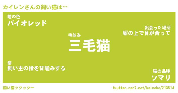 | 意味不明あだ名 | 『ペロリンカイレン』『永久保存カイレン』 |