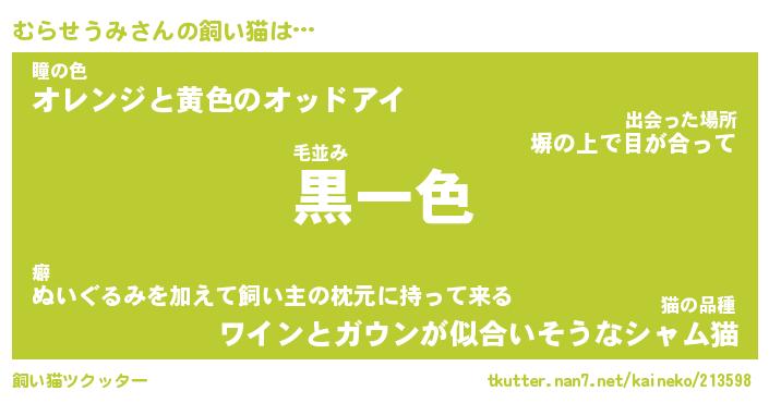 | パンダ模様のシャム猫、、(略 …「めい」 | 6月18日 03:09 |