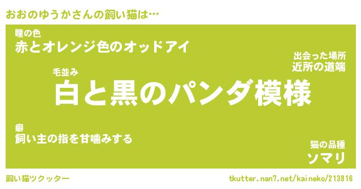 | ツイッター | おおのゆうかさんのツイッターID『namakemono_kun』 |