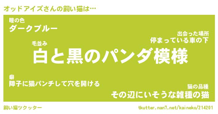 | 欧米人風あだ名 | 『マイケルオッドアイズ』 |