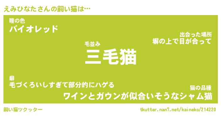 | パンダ模様のシャム猫、、(略 …「めい」 | 6月18日 03:09 |