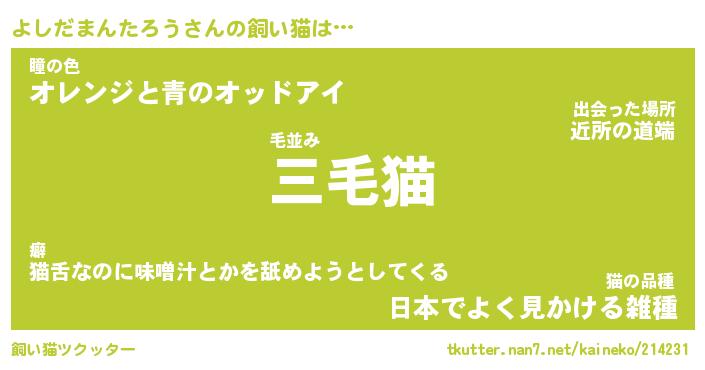 | 猫 | 猫の名前『よしよしにゃん』性別『メス』 |