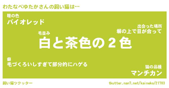 | ポケモン風あだ名 | 『ワタチュウ』『ワタナダネ』 |