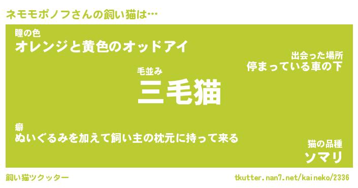 | 料理風あだ名 | 『節約★ネモモポノフと油揚げの玉子丼』 |