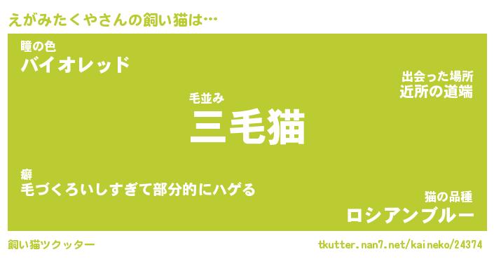 | ヘコむあだ名 | 『えがふぇ~』『つくし』『えがっ子』 |