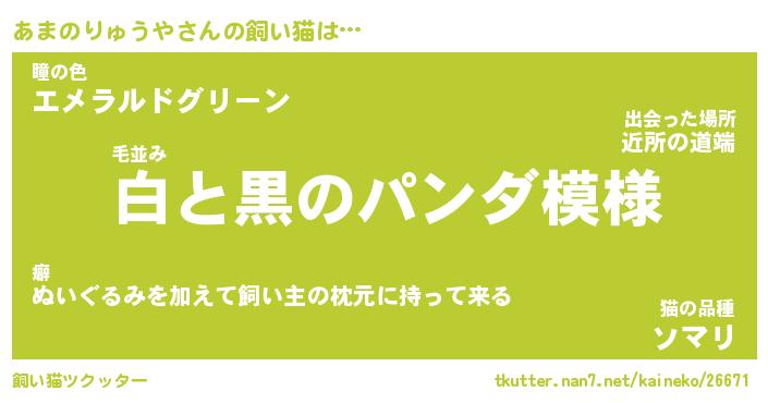 | パンダ模様のシャム猫、、(略 …「めい」 | 6月18日 03:09 |