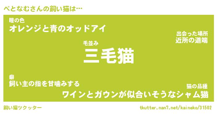 | パンダ模様のシャム猫、、(略 …「めい」 | 6月18日 03:09 |