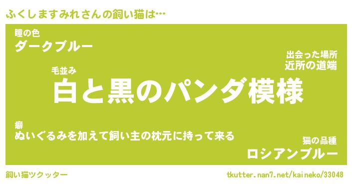 | ツイッター | ふくしますみれさんのツイッターID『namakemono_star』 |