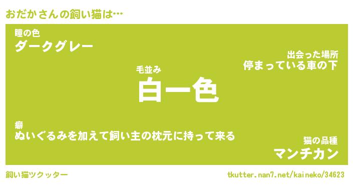 おだかさんの飼い猫は… 毛並み『白一色』瞳の色『ダークグレー』猫の品種『マンチカン』 ツクッター #飼い猫ツクッター http://tkutter.nan7.net/kaineko/34623/
