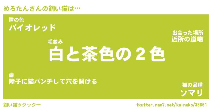 | 欧米人風あだ名 | 『マイケルめろたん』『ウサインめろたん』 |
