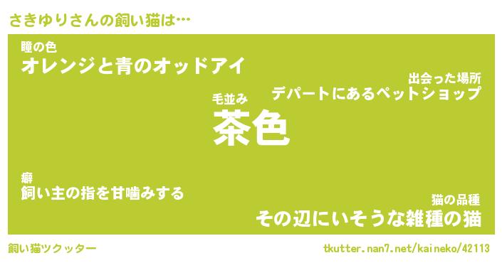 さきゆりさんの飼い猫は… 毛並み『茶色』瞳の色『オレンジと青のオッドアイ』猫の品種『その辺にいそうな雑種の猫』 ツクッター #飼い猫ツクッター http://tkutter.nan7.net/kaineko/42113/