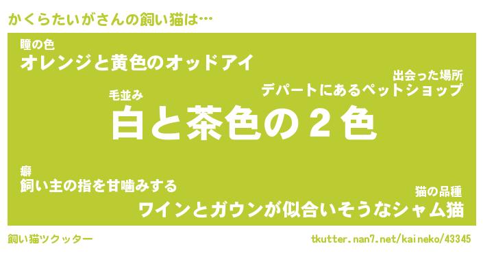 | パンダ模様のシャム猫、、(略 …「めい」 | 6月18日 03:09 |