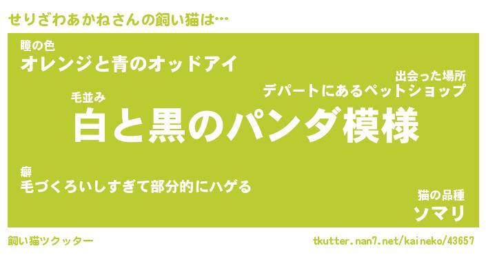 | ツイッター | せりざわあかねさんのツイッターID『namakemono_man』 |