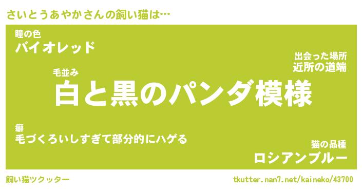 | 猫 | 猫の名前『さいさいにゃん』性別『♂』 |