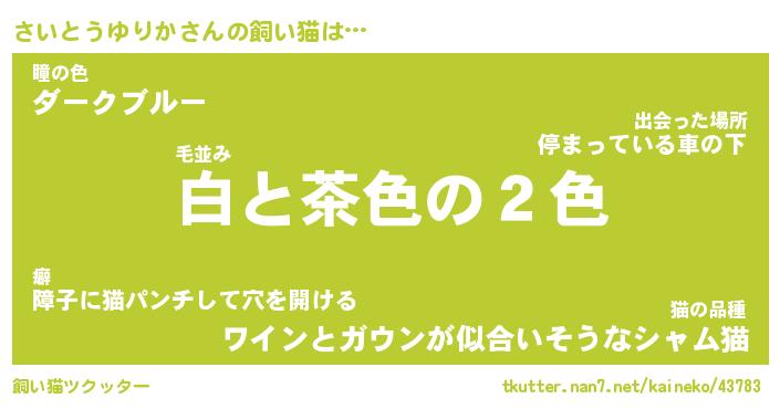 | 恥ずかしいあだ名 | 『プリティーさいとうゆりか』『さいちん』 |