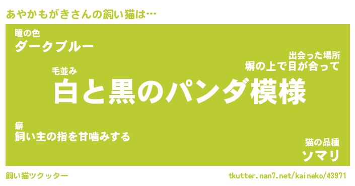 | パンダ模様のシャム猫、、(略 …「めい」 | 6月18日 03:09 |
