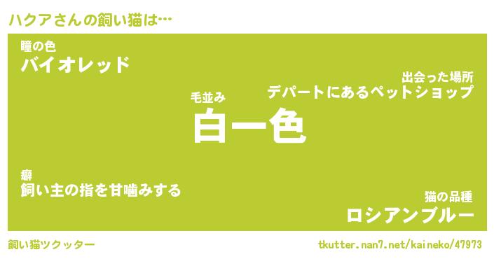 | 欧米人風あだ名 | 『マイケルハクア』『ハクアクリステル』 |