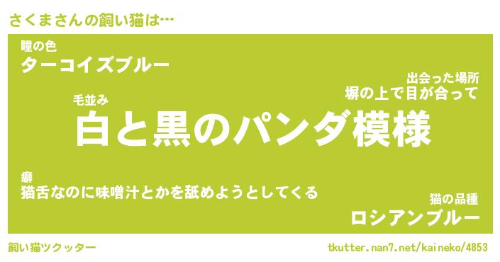 | パンダ模様のシャム猫、、(略 …「めい」 | 6月18日 03:09 |