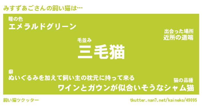 | ツイッター | みすずあごさんのツイッターID『dendenmushi_idle』 |