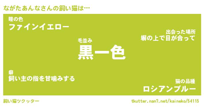 ながたあんなさんの飼い猫は… 毛並み『黒一色』瞳の色『ファインイエロー』猫の品種『ロシアンブルー』 ツクッター #飼い猫ツクッター http://tkutter.nan7.net/kaineko/54115/