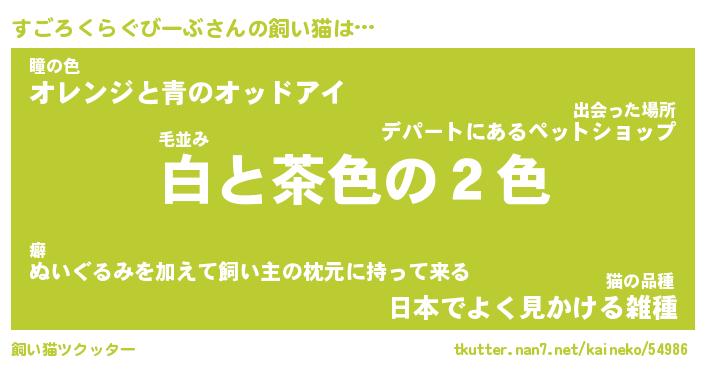 すごろくらぐびーぶさんの飼い猫は… 毛並み『白と茶色の2色』瞳の色『オレンジと青のオッドアイ』猫の品種『日本でよく見かける雑種』 ツクッター #飼い猫ツクッター http://tkutter.nan7.net/kaineko/54986/