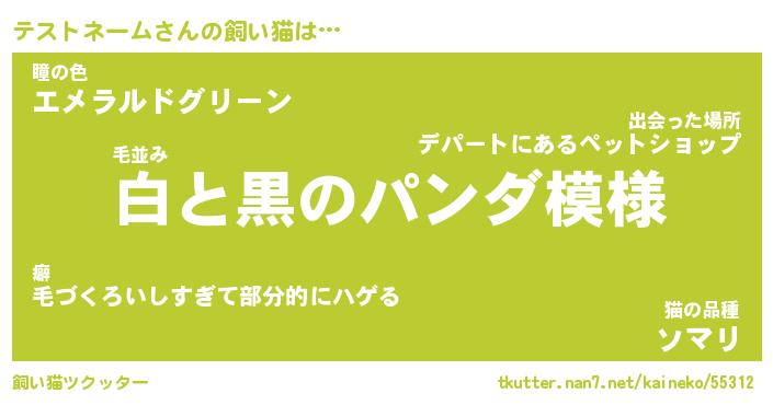 | ツイッター | テストネームさんのツイッターID『dendenmushi_idle』 |