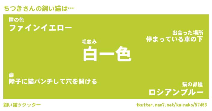 ちつきさんの飼い猫は… 毛並み『白一色』瞳の色『ファインイエロー』猫の品種『ロシアンブルー』 ツクッター #飼い猫ツクッター http://tkutter.nan7.net/kaineko/57463/
