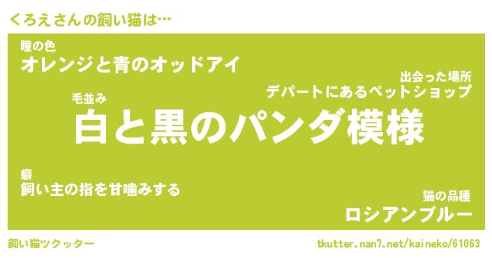 | パンダ模様のシャム猫、、(略 …「めい」 | 6月18日 03:09 |