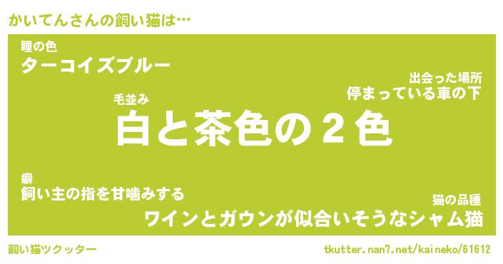かいてんさんの飼い猫は… 毛並み『白と茶色の2色』瞳の色『ターコイズブルー』猫の品種『ワインとガウンが似合いそうなシャム猫』 ツクッター #飼い猫ツクッター http://tkutter.nan7.net/kaineko/61612/