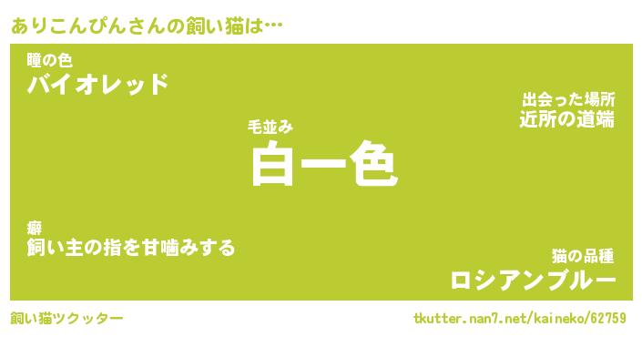 ありこんぴんさんの飼い猫は… 毛並み『白一色』瞳の色『バイオレッド』猫の品種『ロシアンブルー』 ツクッター #飼い猫ツクッター http://tkutter.nan7.net/kaineko/62759/