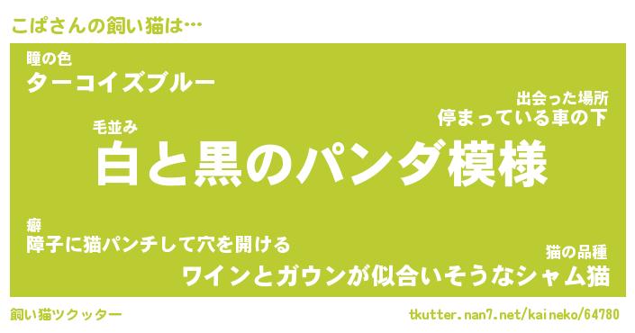 | パンダ模様のシャム猫、、(略 …「めい」 | 6月18日 03:09 |