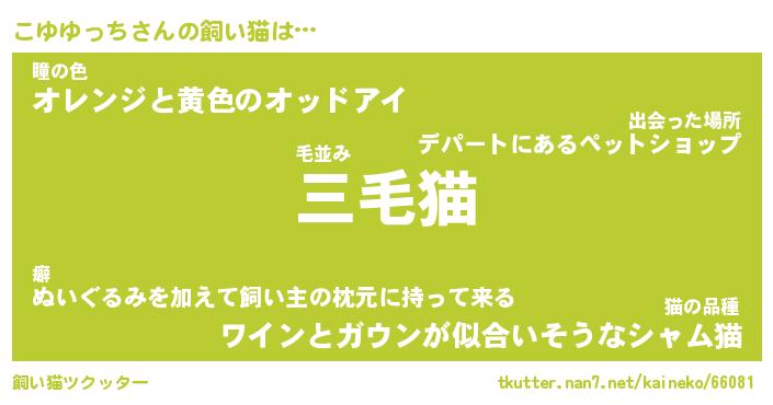こゆゆっちさんの飼い猫は… 毛並み『三毛猫』瞳の色『オレンジと黄色のオッドアイ』猫の品種『ワインとガウンが似合いそうなシャム猫』 ツクッター #飼い猫ツクッター http://tkutter.nan7.net/kaineko/66081/