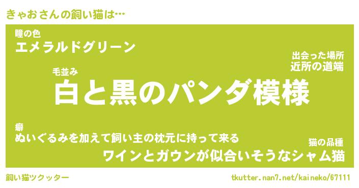 | パンダ模様のシャム猫、、(略 …「めい」 | 6月18日 03:09 |
