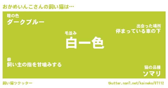 おかめいんこさんの飼い猫は… 毛並み『白一色』瞳の色『ダークブルー』猫の品種『ソマリ』 ツクッター #飼い猫ツクッター http://tkutter.nan7.net/kaineko/67112/