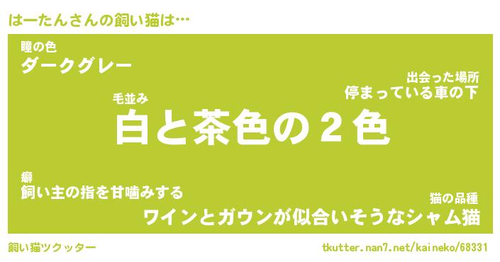 | パンダ模様のシャム猫、、(略 …「めい」 | 6月18日 03:09 |