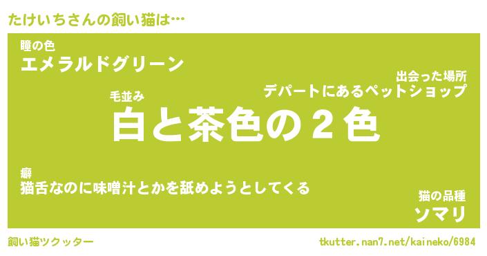 | 2回繰り返すあだ名 | 『たけたけ』『たたけけ』『おやおや』 |