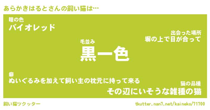 | 男性向けラノベタイトル風あだ名 | 『あらかきはるとの憂鬱』 |