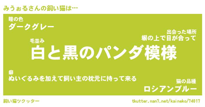 | パンダ模様のシャム猫、、(略 …「めい」 | 6月18日 03:09 |