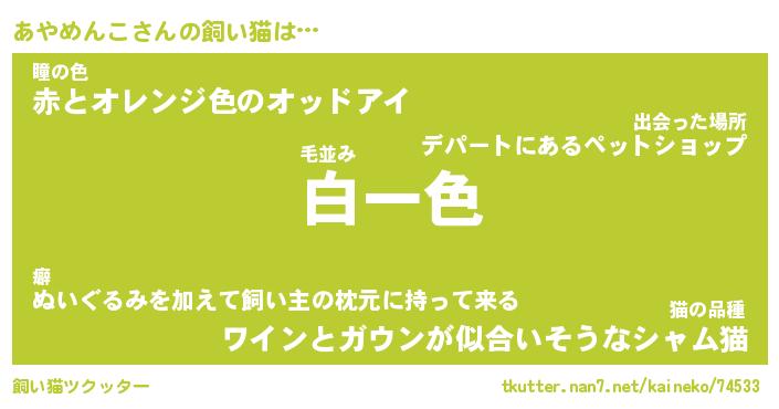 | パンダ模様のシャム猫、、(略 …「めい」 | 6月18日 03:09 |